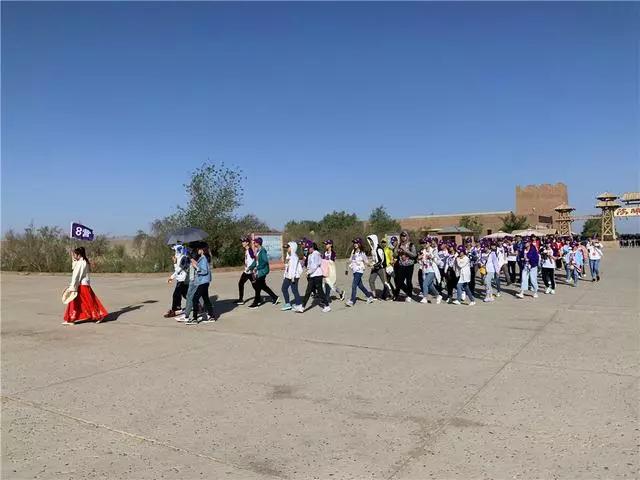 在景区讲解员带领下,有序参观阳关景区